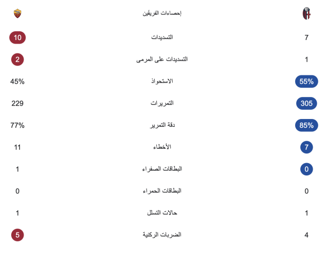 مرت حتى الآن ساعة من مباراة روما وبولونيا التي تقام في الجولة الثانية والثلاثين من الدوري الإيطالي.