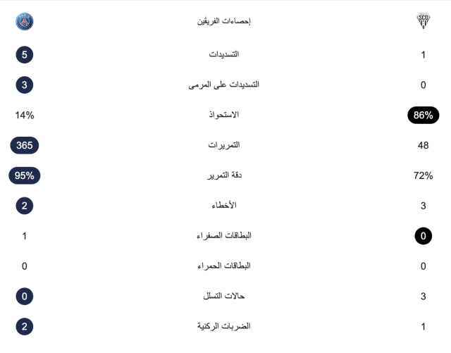 إحصائيات الشوط الأول:
