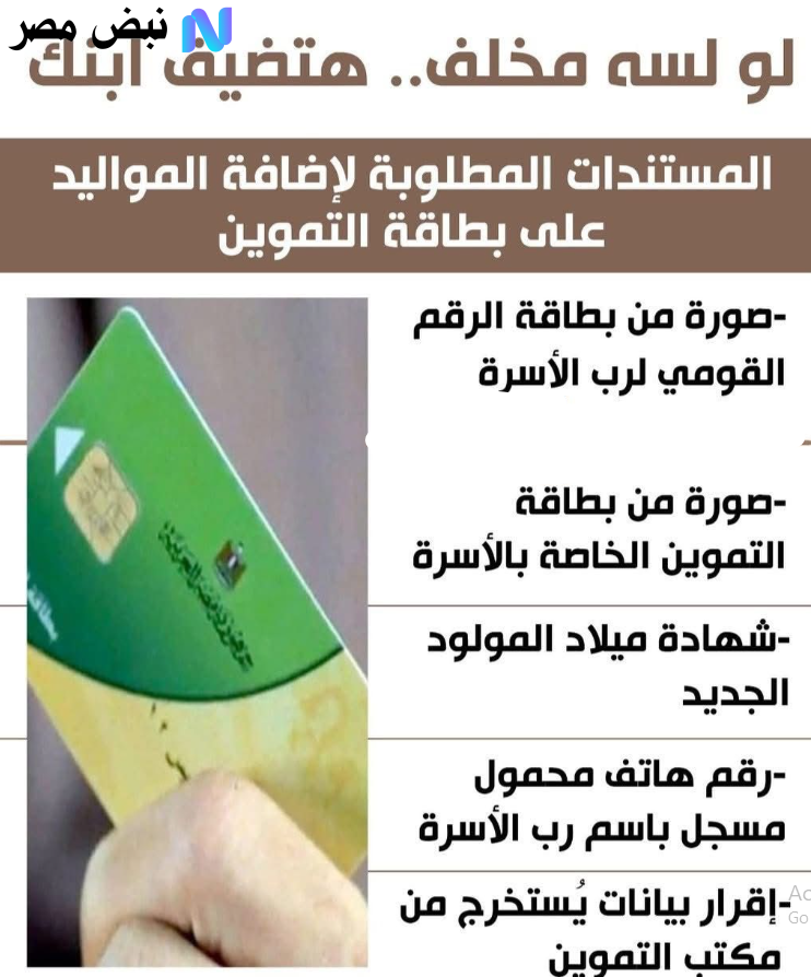 اتباع هذه الشروط وتوفير الأوراق المطلوبة بدقة يسهل عملية إضافة المواليد على البطاقة التموينية ويضمن حصولهم على الدعم الحكومي دون مشاكل أو تأخير.