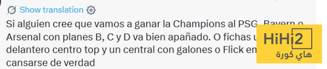 إذا ظن أحد أننا سنفوز بدوري أبطال أوروبا ضد باريس سان جيرمان أو بايرن ميونخ أو أرسنال بخطط بديلة ، فسيصدم بالواقع .