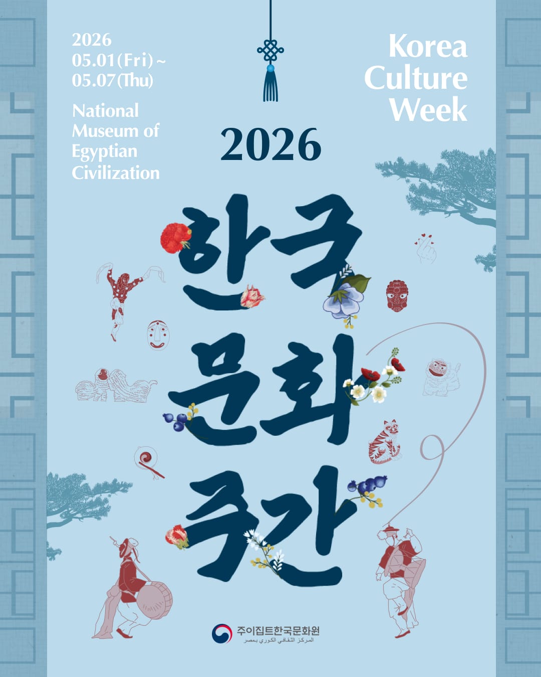 ويُختتم الأسبوع في 7 مايو بعرض فني لطلاب أكاديميتي “الكيبوب” والموسيقى التقليدية (جوجاك) لعام 2026. ويأتي هذا العرض تتويجًا لتدريبات مكثفة تلقاها الطلاب على يد خبراء كوريين، ليقدموا لوحة فنية تمزج ببراعة بين الحركات التراثية والأنماط المسرحية الحديثة.