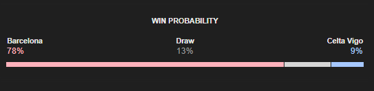 نسبة فوز برشلونة 78 % ، التعادل 13 % ، الخسارة 9 %.