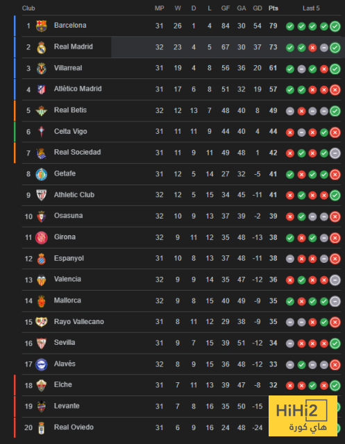 برشلونة في المركز الأول بترتيب الليغا برصيد 79 نقطة