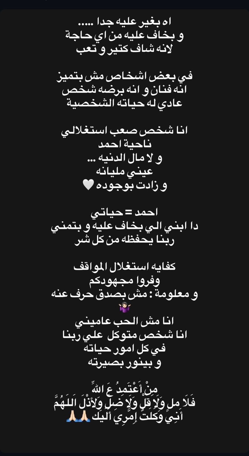 واختتمت رسالتها بالتأكيد على أنها تعتمد على الله في مواجهة أي كلام سلبي أو إساءة تُقال عنها، معربة عن ثقتها بأن الحقيقة ستظهر في النهاية، ومشددة على أنها لن تنخرط في أي خلافات أو نقاشات لا جدوى منها.