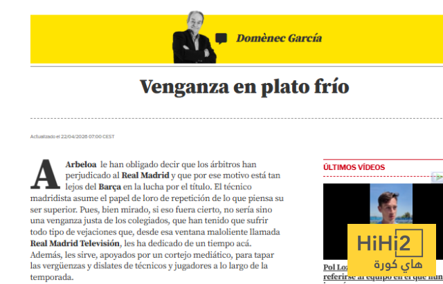 أُجبر أربيلوا على التصريح بأن الحكام ظلموا ريال مدريد ، وأن هذا هو سبب تأخرهم الكبير عن برشلونة في سباق اللقب ، يردد مدرب الريال كلام الإدارة كالببغاء ، ولو كان هذا صحيحا لكان مجرد انتقام للحكام الذين تحملوا شتى أنواع الإهانات من تلك القناة البغيضة للنادي ، والتي دأبت على إخضاعهم لهذا النوع من الإساءة لفترة طويلة ، فضلا عن ذلك، وبدعم من حاشية إعلامية يستخدم هذا للتغطية على الأخطاء الفادحة التي ارتكبها المدربون واللاعبون طوال الموسم .