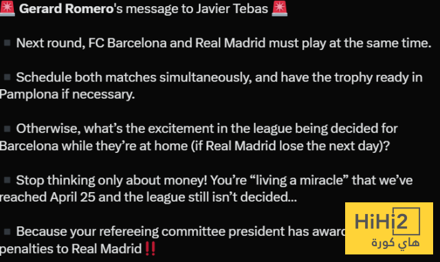 رسالة إلى تيباس: الجولة القادمة يجب أن يلعب برشلونة وريال مدريد بنفس التوقيت.