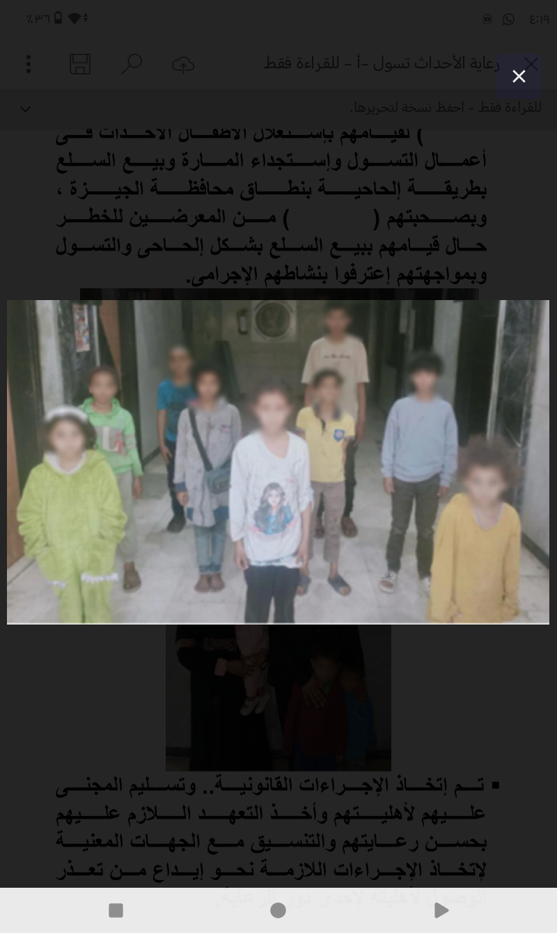 في إطار جهود وزارة الداخلية لمكافحة جرائم استغلال الأحداث في التسول، تمكنت الإدارة العامة لمباحث رعاية الأحداث بقطاع الشرطة المتخصصة من ضبط (6 رجال و4 سيدات – من بينهم 8 أشخاص لهم معلومات جنائية)، لقيامهم باستغلال الأطفال الأحداث في أعمال التسول واستجداء المارة وبيع السلع بطريقة إلحاحية بنطاق محافظة الجيزة.