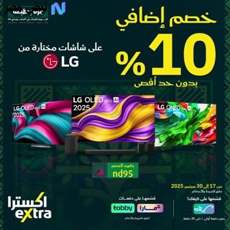 أحصل على شاشة إل جي الآن من اكسترا بعروض اليوم الوطني السعودي 95 واستخدم كود الخصم لتستفيد بالخصم الإضافي 10% بجانب الأسعار الخاصة التي تعرضها اكسترا لشاشات LG مختارة والعرض ساري إلى 30 سبتمبر شامل إمكانية التقسيط عبر بسيطة لمدة تصل إلى 36 شهر.