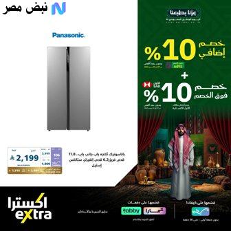 العرض على ثلاجة موديل باب جنب باب من بانسونيك بحجم 11.8 قدم مع فريزر بحجم 6.2 قدم، تأتي من اكسترا بعرض أسعار اليوم الوطني بسعر 2199 ريال بدل سعر 3999 ريال سعودي بقيمة توفير 1800 ريال سعودي.