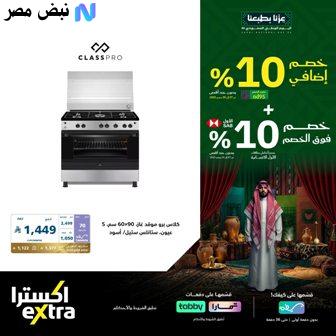 العرض باليوم الوطني السعودي من اكسترا على موقد غاز، بمقاس 90*60 ستانلس بعدد خمسة عيون، العرض بسعر 1449 ريال سعودي بدل سعر 2499 ريال بقيمة توفير بعرض اليوم الوطني 1050 ريال سعودي.