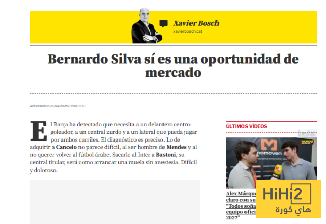من جهة أخرى .. هناك لاعب ثالث سينتهي عقده وقد أعلن بالفعل رحيله عن مانشستر سيتي والذي حلم بالانضمام إلى برشلونة صيفين متتاليين بل وعرض الانضمام على سبيل الإعارة للسنة الأولى دون أن يدفع لابورتا أي رسوم انتقال ولكن البارسا يقول إنه غير مهتم به ؟ هل شاهد فليك الأداء الاستثنائي الذي قدمه برناردو سيلفا في مباراة مانشستر سيتي وأرسنال الحاسمة يوم الأحد ؟