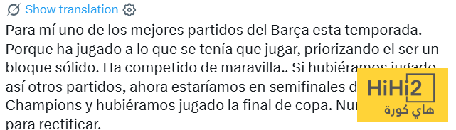 بالنسبة لي كانت هذه واحدة من أفضل مباريات برشلونة هذا الموسم لأنهم لعبوا بالطريقة التي يجب أن يلعبوا بها مع إعطاء الأولوية للعب كفريق متماسك .