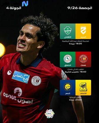 تشهد بطولة الدوري السعودي ثلاث مباريات في إطار مباريات اليوم الثاني من مباريات الجولة الرابعة من بطولة دوري روشن السعودية موسم 2025- 2026 تجمع تلك المباريات كل من فريق الحزم ضد الأهلي وفريق ضمك ضد الاتفاق وفريق الاتحاد ضد النصر.. فهيا نستعرض تفاصيل كل تلك المباريات بالمواعيد والقنوات الناقلة وموقف الفرق.