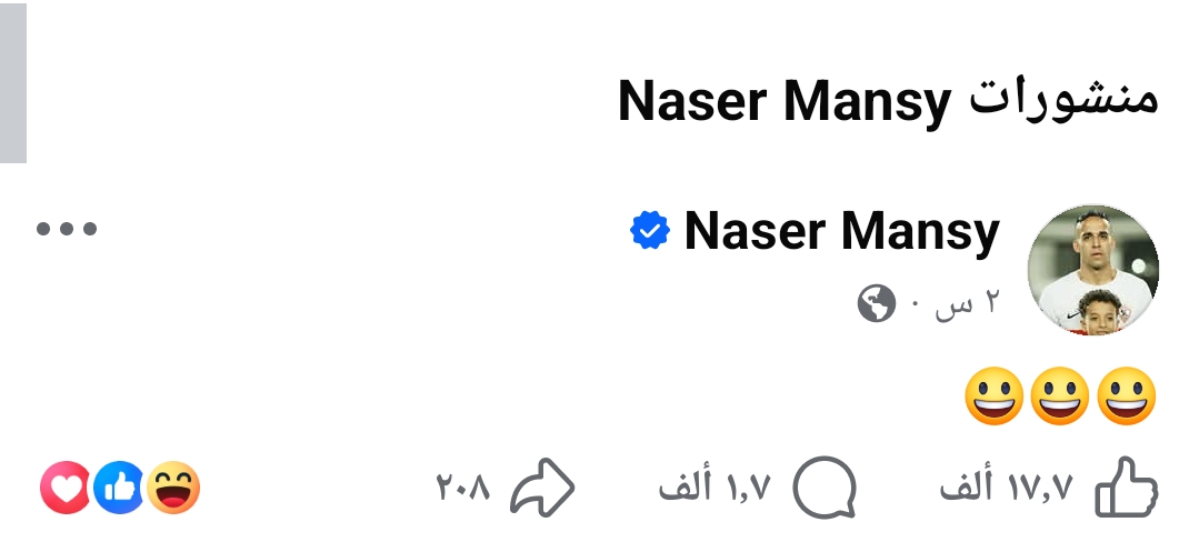 ونشر ناصر منسي على صفحته الرسمية على موقع التواصل الإجتماعي فيسبوك منشور يتضمن ايموجي ضحك.